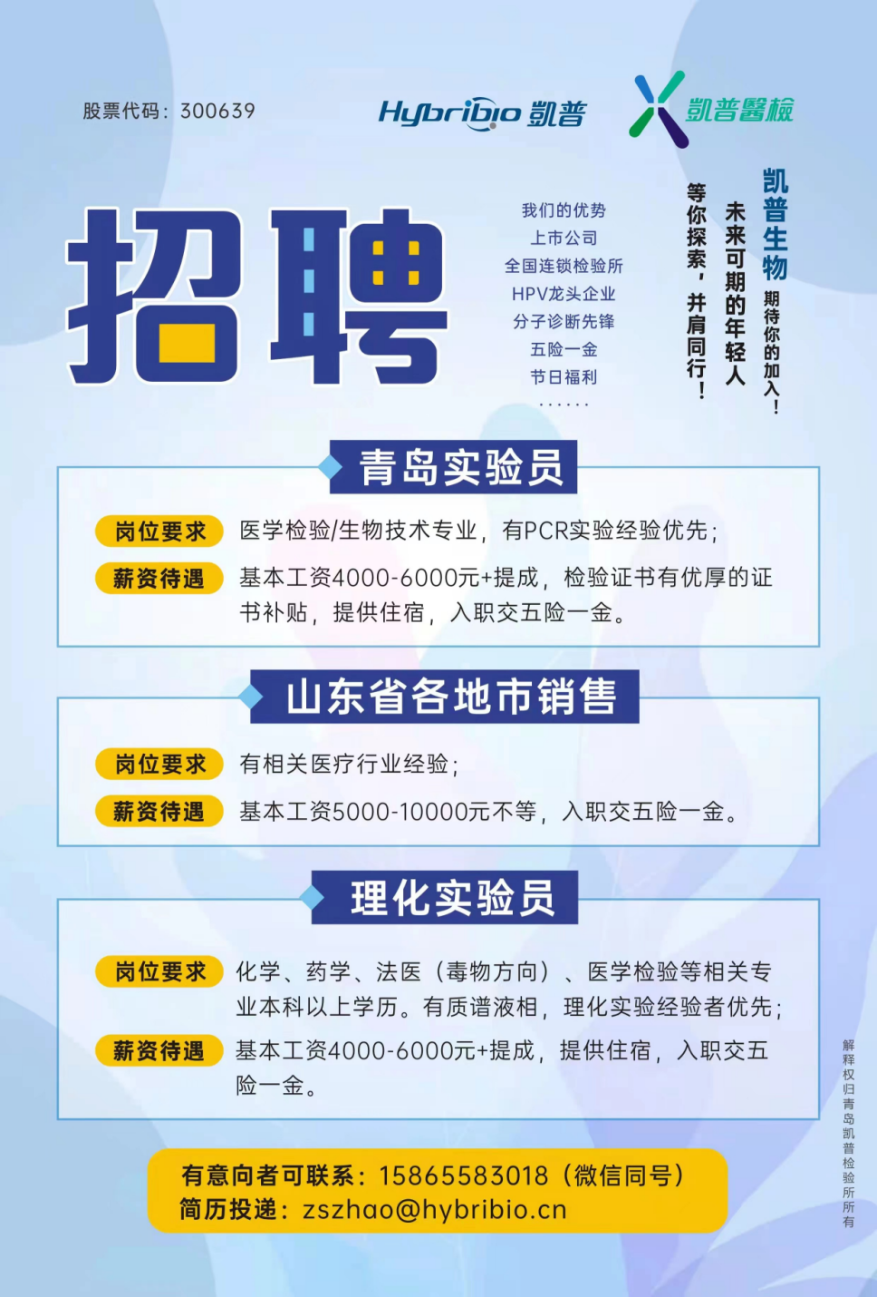 【招聘信息】青岛凯普医学检验实验室有限公司