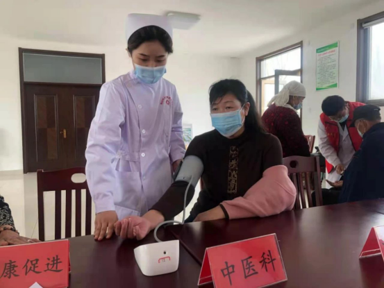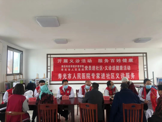 护理学院党员志愿服务队的教师及寿光市人民医院专家团为韩家牟城村村民提供测血压、疾病(内科、外科、疼痛科、儿科及中医科)咨询及诊疗服务。