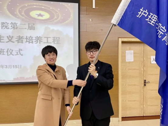 青年发展是当代青年工作的主体,青年兴,则国兴;青年强,则国强。为了认真落实关于青年马克思主义者培养工程的基层工作,深入贯彻团中央研究制定的《“青年马克思主义者培养工程”实施纲要》,护理学院于3月15日举行青年马克思主义者培养工程开班仪式。参加本次开班仪式的有:院长董金萍、党支部书记隋海英、党支部副书记郭振、团总支书记李瑶瑶及部分教师代表。