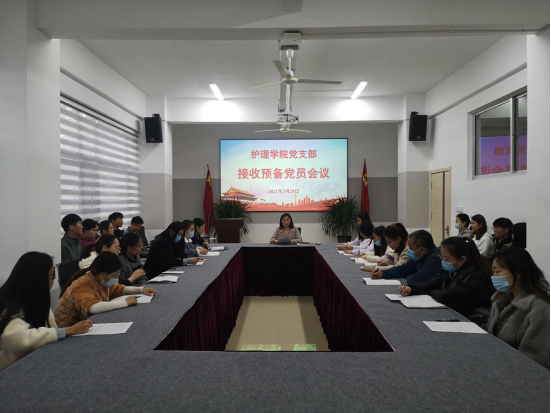 党支部书记隋海英提出自己的希望。首先希望他们继续认真学习党的纲领和党的章程,其次是认真学习护理专业知识,我们不仅是一位党员更是一名护理专业的学生;最后要认真学习“党史”,用温暖和光辉吸引身边的同学,用实际行动迎接党的一百周年华诞。