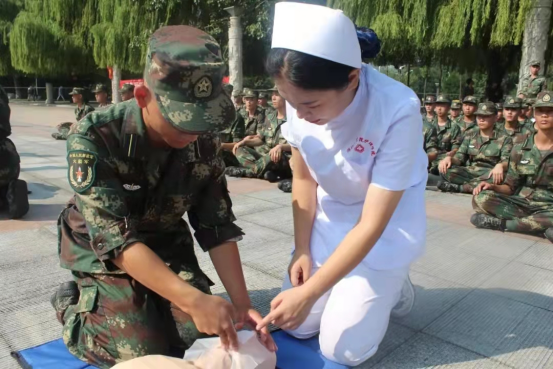 自9月9日开始,护理学院阳光“心”护社会公益行动志愿服务队走进2021级新生军训现场,对各二级学院辅导员及2021级7456名新生开展了为期九天的急救知识宣传和急救技能培训活动。