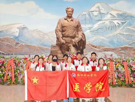 医学院党委高度重视党建引领作用,实施“守正创新、教学改革、科研聚力、培根铸魂”四大工程,精心铸造“党团共建•阳光护理”党建育人品牌,深入挖掘齐鲁大地红色资源与民生健康场景,统筹开展社区义诊、红色场馆研学、药企展馆探访等多元实践活动,推动党的红色基因与医学使命深度融合,引导广大医学生在传承红色血脉中感悟初心使命,在践行健康服务中恪守职业誓言,奋力书写新时代医学生的青春实践华章。