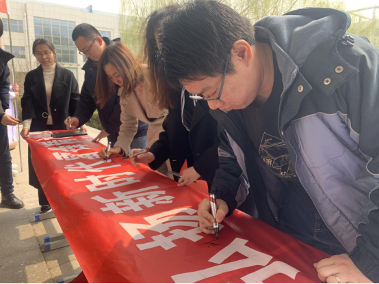 启动仪式上,党支部书记隋海英致辞,指出弘扬雷锋精神要在学习中传承、在奉献中作为、在实践中创新。志愿者代表宣读了倡议书,号召大家向雷锋同志学习,向身边的优秀榜样学习,把崇高理想信念和道德品质追求转化为具体行动,体现在平凡的学习生活中,将雷锋精神代代传承下去。随后,举行签名仪式,老师、同学在条幅上郑重地签下名字,为践行雷锋精神做出了庄严承诺。