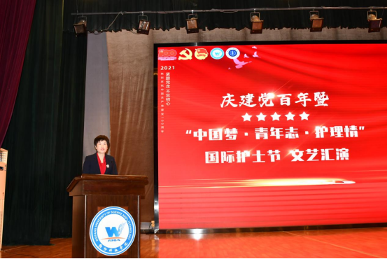 为迎接第110个“5.12”国际护士节的到来,秉承和弘扬南丁格尔无私奉献、救死扶伤精神,表彰优秀护理学子,同时庆祝中国共产党成立100周年,讴歌党的丰功伟绩,传承红色基因。潍坊科技学院护理学院于5月15日在国际会议中心隆重举办了庆建党百年暨“中国梦·青年志·护理情”国际护士节庆祝大会。