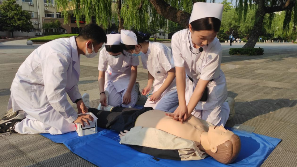 志愿服务队队员利用模拟人向大家详细讲解溺水急救(心肺复苏术)的方法及步骤,并对急救技能进行现场模拟实践。进一步增强了同学们防溺水的安全防范意识,提高了大家对溺水危害性的认识和自我保护能力,营造了“安全第一,生命无价”的宣传氛围。同时,志愿服务队利用模拟人进行现场教学,向大家详细讲解溺水急救的方法及步骤,并对心肺复苏、人工呼吸等救援知识进行了现场模拟实践。