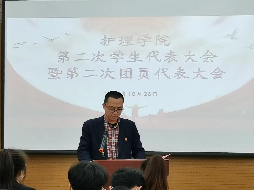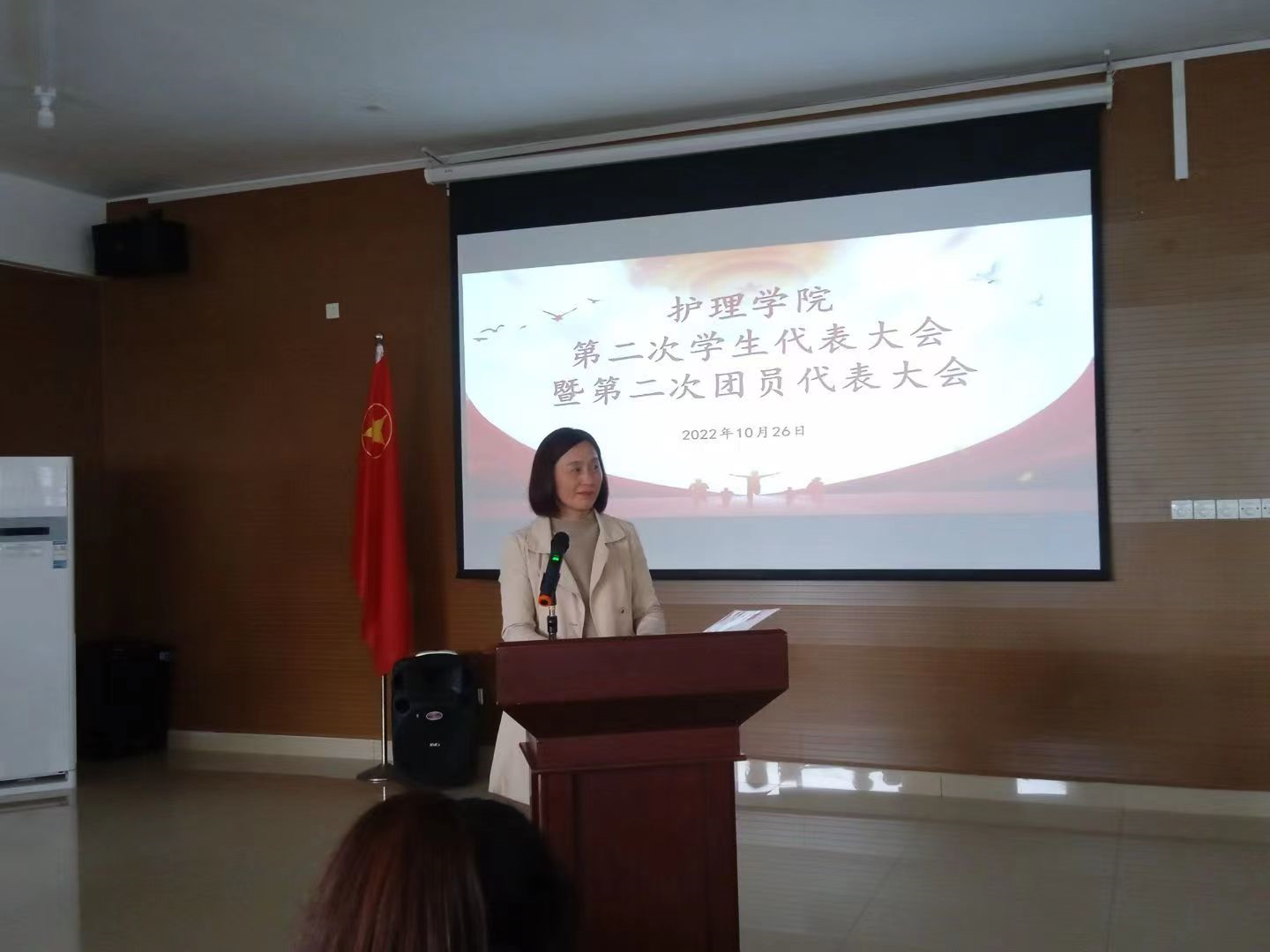 党支部书记隋海英向大会的召开表示热烈的祝贺,向全体代表和全体同学致以亲切的问候。她充分肯定了护理学院学生会在思想引领、服务同学、文化建设、活动举办等方面取得的成绩并向广大青年学子提出了希望。